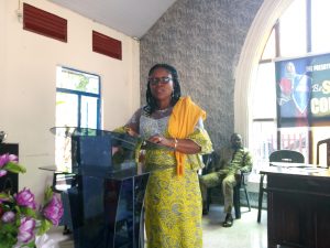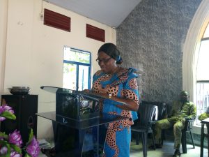 The guest speaker, Mrs Juliana Udoh King addressing the Students at the fresher’s orientation.