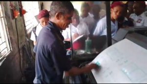 EXAMS. OFFICER.  Mr Ini-Etuk badging the Sanitary and Assistant Sanitary Prefect